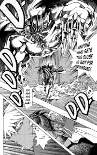 So, what did I think of this chapter overall? There were a couple of instances where I had to tilt my head and squint, as usual. I'm not certain I understand how Slifer's propelling itself upward with one attack to the ground was better than just twisting around and using that shot on Diabound from where it was. The information that Slifer has more power in the air gives this decision a LITTLE credence, but the amount of air gained with the propulsion move didn't seem to be much, and didn't seem to really impact the strength of the next attack either. It also didn't appear to give Slifer much of an advantage when dragging Diabound higher up. I get the feeling that KT just did it for how cool it looked rather than anything practical it added to the way the fight was progressing.
