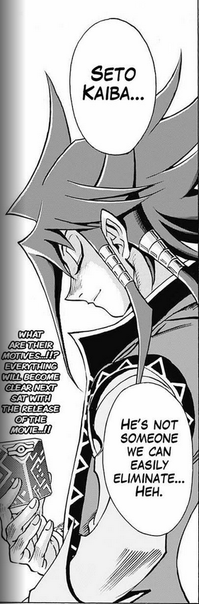 I think the Blue Eyes White Dragon dissolving there toward the end is a pretty big indication that Kaiba's direction is going backwards. I joked about Kisara noping out, but it does bear a HIGH resemblance to the other times she has refused to carry out attacks, disappearing from the field because she doesn't think her participation is right or good. It's always on the cusp of "victory" right? Kaiba would have "won" the first time if BEWD hadn't disappeared at a critical moment in his first appearance. The Conical Hat Weirdo would have "won" if it hadn't disappeared before the end of the turn. Priest Seto would have "won" if it hadn't disappeared, while Kisara appeared before him to insist he can't be consumed by shadows. In all of these matches, technically the wielders of BEWD lost the battle, but it was for the wider benefit of everyone involved. Except Conical Hat Weirdo, of course, fuck that guy. The point is that there's circumstances in which a technical win actually makes things worse, and the Blue Eyes White Dragon has been crucial in putting a stop to that shit. KT seemed to be admitting here that not only were Kaiba's actions self-destructive, they were also a regressive pattern of behavior that even his fave monster has to call the fuck out. But hey, when you're compelled to write a prologue and movie about characters that were SUPPOSED to have moved on with their lives a long time ago because the owners of your work have noticed that it's gotten really popular again and the they wanna cash in...